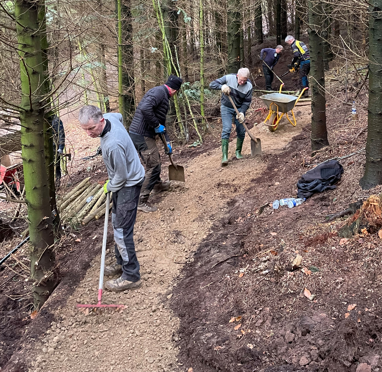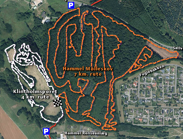 Sporet er på ca 3,5 km og er mere udfordrende en Mølleskoven og indeholder ”røde” passager for den øvede MTB-rytter og desuden et ”sort” stykke for ekspert MTB rytteren, hvor der også er en b-linie. Der er mulighed for stejle nedkørsler, drops, rockgardens m.m.